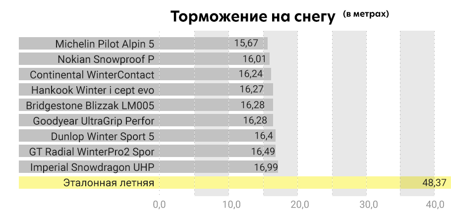 Вторую позицию заняла бюджетная Imperial, тормозной путь которой было относительно длинным, но на поворотах оказалась лучшей среди участниц теста.