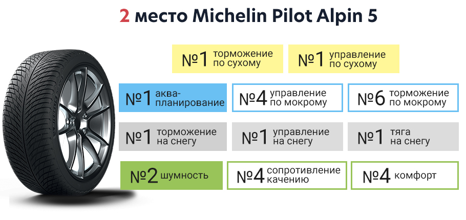 Наконец, самой быстрой была Michelin Pilot Alpin 5. По словам испытателя на ней было не очень весело ездить, вероятно, субъективно она занимала 3-е или 4-е место, но у нее было надежное боковое сцепление и отличное торможение.